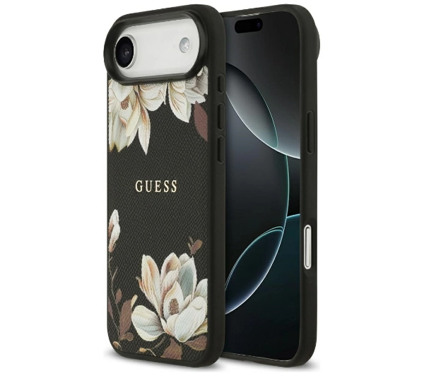 Etui Guess Grained Flowers Classic Logo MagSafe do iPhone Air czarny