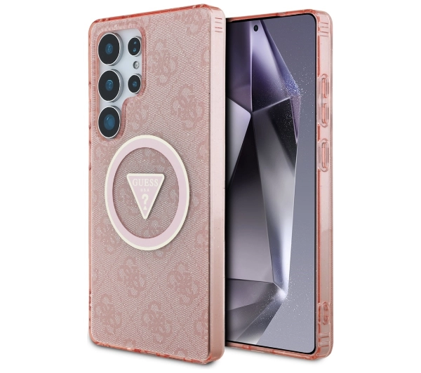 Etui Guess 4G Glitter Triangle Buttons MagSafe do Galaxy S25 Ultra Różowy