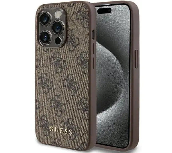 Etui Guess 4G Metal Gold Logo GUHCP15LG4GFBR do iPhone 15 Pro Brązowy