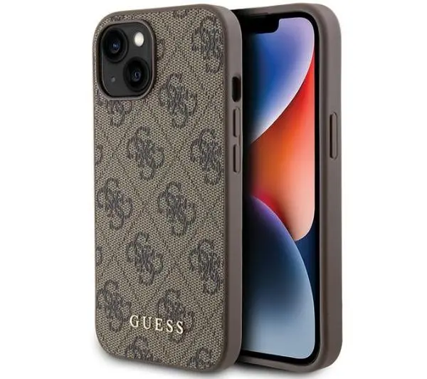 Etui Guess 4G Metal Gold Logo GUHCP15SG4GFBR do iPhone 15 Brązowy