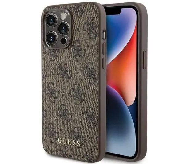 Etui Guess 4G Metal Gold Logo GUHCP15XG4GFBR do iPhone 15 Pro Max Brązowy