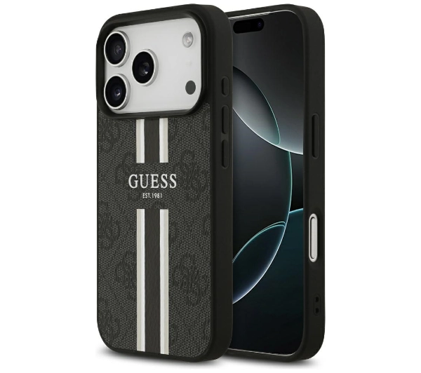 Etui Guess 4G Printed Stripes MagSafe do iPhone 17 Pro Czarny