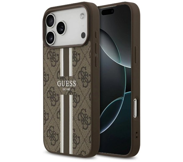 Etui Guess 4G Printed Stripes MagSafe do iPhone 17 Pro Max Brązowy