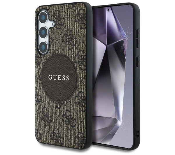 Etui Guess 4G Round Patch Classic Logo MagSafe do Galaxy S25 Plus Brązowy