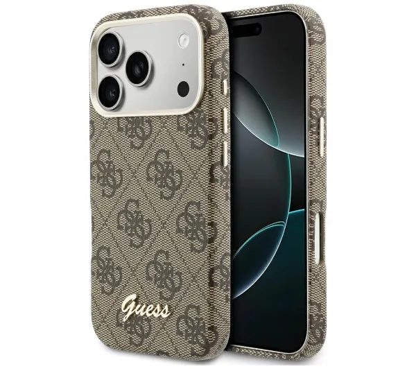 Etui Guess 4G Script MagSafe do iPhone 17 Pro Max Brązowy