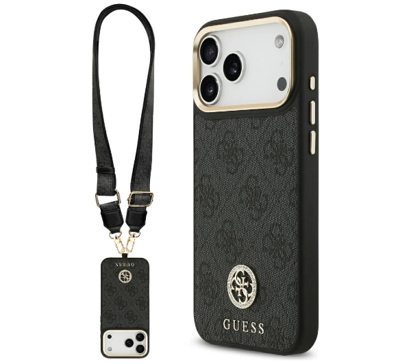 Etui Guess 4G Srtass Logo & Big Strap Metal Buttons MagSafe do iPhone 17 Pro Max czarny