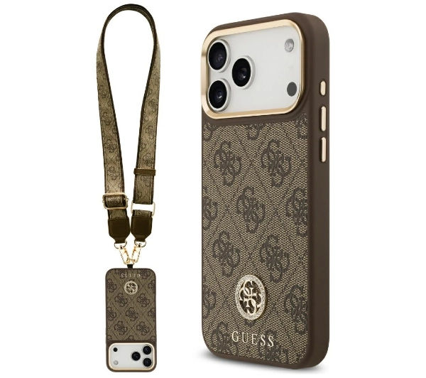 Etui Guess 4G Strass Logo & Big Strap Metal Buttons MagSafe do iPhone 17 Pro Max brązowy