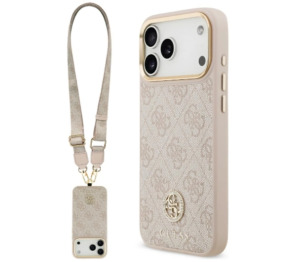 Etui Guess 4G Strass Logo & Big Strap Metal Buttons MagSafe do iPhone 17 Pro Max różowy