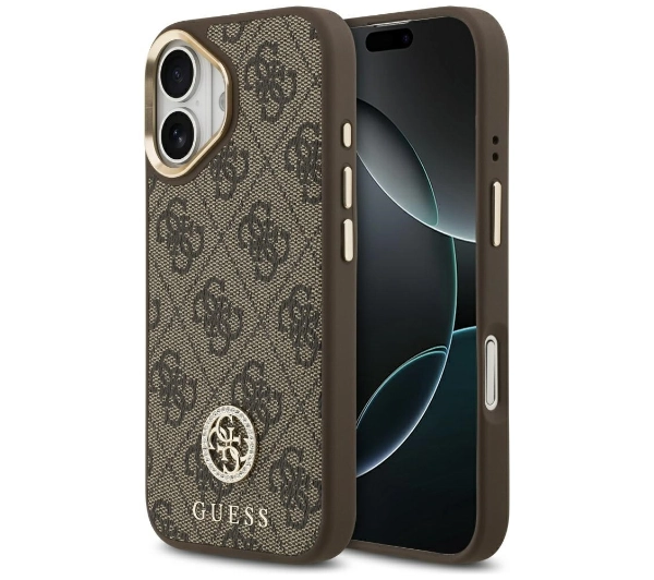 Etui Guess 4G Strass Logo MagSafe do iPhone 17 brązowy