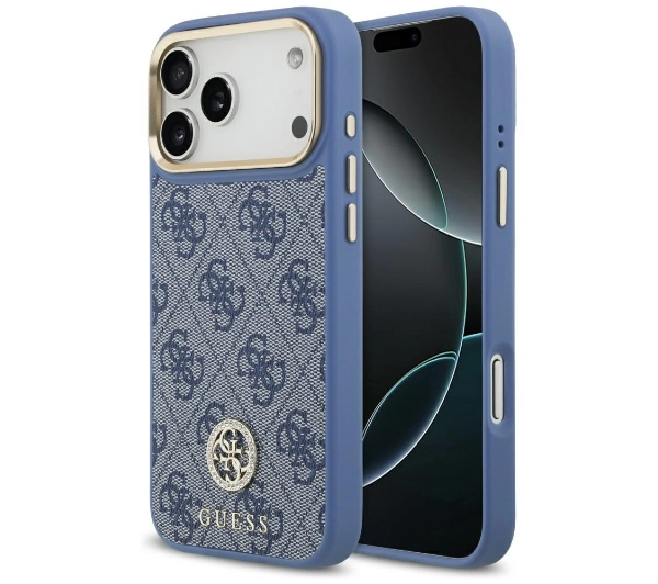 Etui Guess 4G Strass Logo MagSafe do iPhone 17 Pro Max niebieski