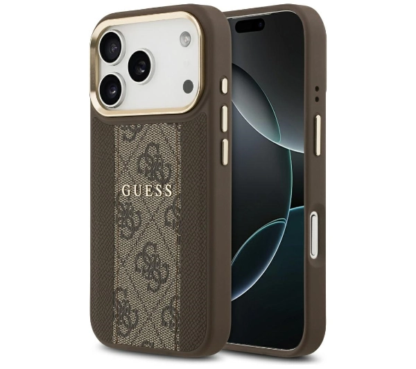Etui Guess 4G Stripe MagSafe do iPhone 17 Pro brązowy