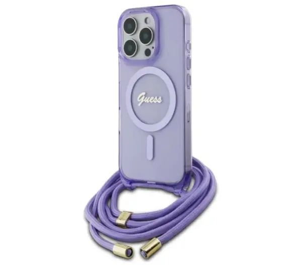 Etui Guess Crossbody Cord Script MagSafe do iPhone 16 Pro Fioletowy