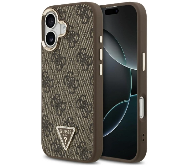 Etui Guess 4G Triangle Logo MagSafe do iPhone 17 brązowy złoty