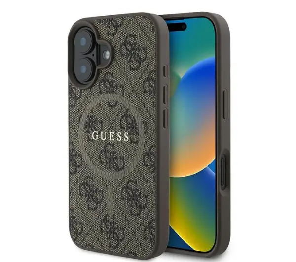 Etui Guess hardcase 4G Ring Classic Logo MagSafe iPhone 16 Plus Brązowy