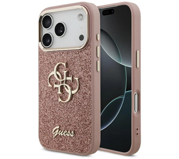 Etui Guess Fixed Glitter Big 4G Metal Frame do iPhone 17 Pro różowy