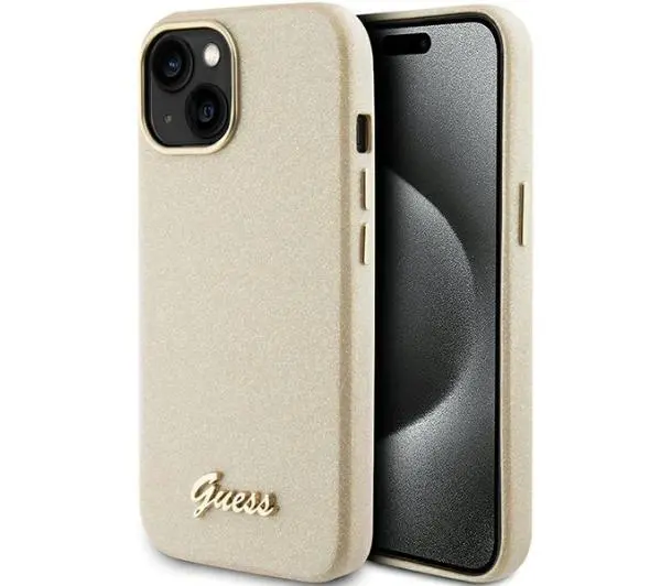 Etui Guess Glitter Glossy Script GUHCP15SPGMCSD do iPhone 15 Złoty