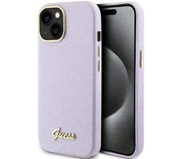 Etui Guess Glitter Glossy Script GUHCP15SPGMCSL do iPhone 15 Fioletowy