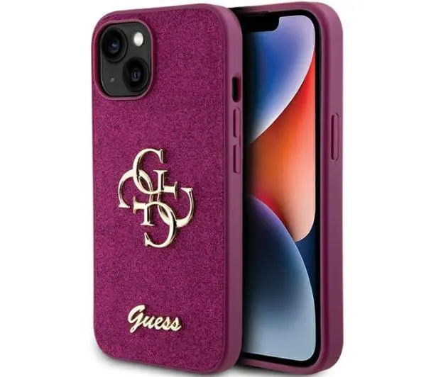 Etui Guess Glitter Script Big 4G GUHCP15SHG4SGU do iPhone 15 Purpurowy