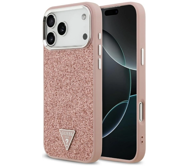 Etui Guess Glitter Triangle Logo MagSafe do iPhone 17 Pro Max różowy
