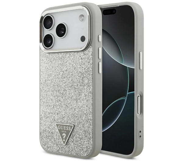 Etui Guess Glitter Triangle Logo MagSafe do iPhone 17 Pro srebrny