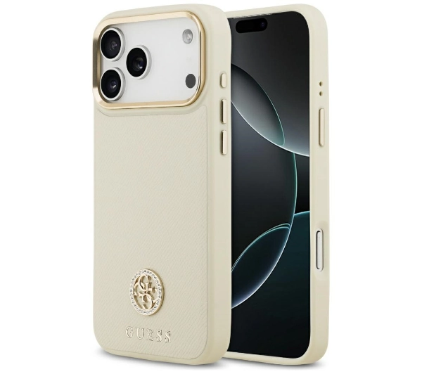Etui Guess Grained Strass Logo MagSafe do iPhone 17 Pro Max beżowy