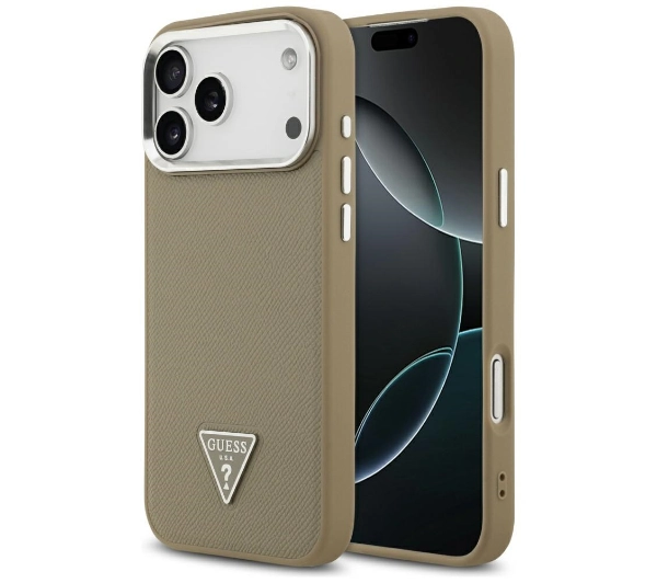 Etui Guess Grained Triangle Logo MagSafe do iPhone 17 Pro Max brązowy