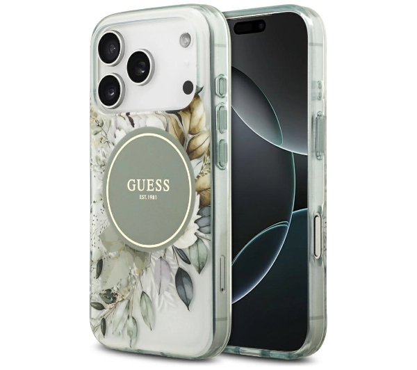 Etui Guess IML Flower & Tonal Circle MagSafe do iPhone 17 Pro zielony