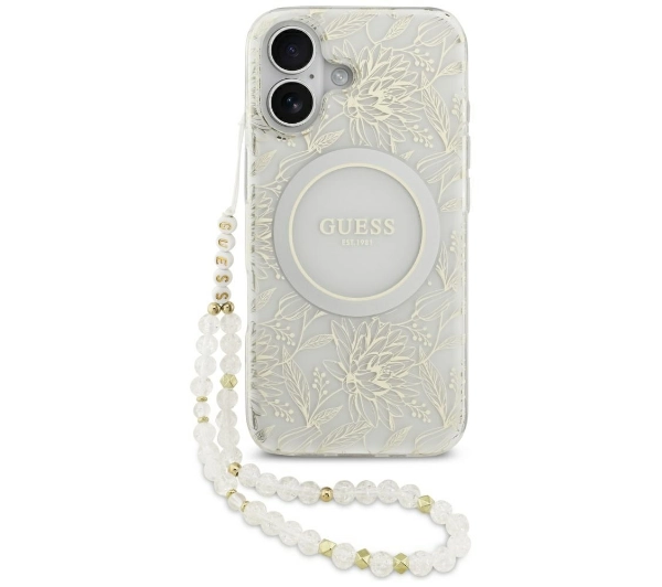 Etui Guess IML Flowers Electro Pearl Strap MagSafe do iPhone 17 biały