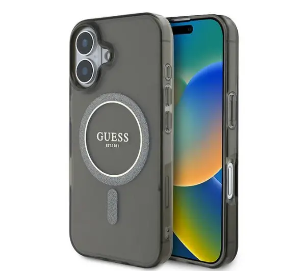 Etui Guess IML Glitter Circle MagSafe do iPhone 16 Czarny