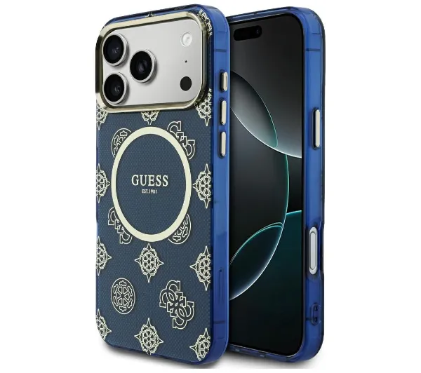 Etui Guess IML Peony Dot MagSafe do iPhone 17 Pro Max Niebieski