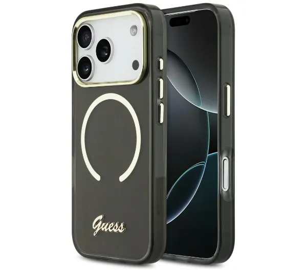 Etui Guess IML Script Metal MagSafe do iPhone 17 Pro Max Czarny