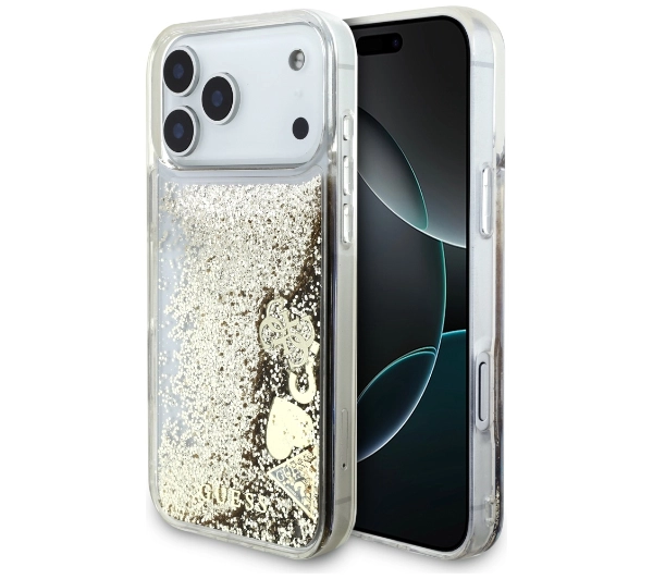 Etui Guess Liq. Glitter 4 Charms do iPhone 17 Pro złoty
