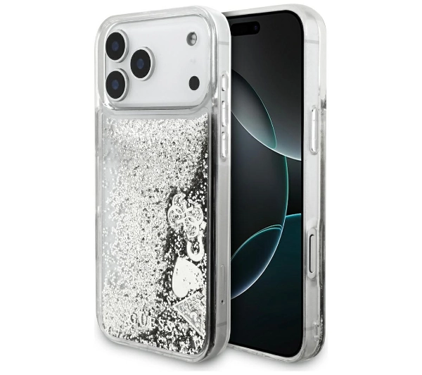 Etui Guess Liq. Glitter Charms do iPhone 17 Pro Max srebrny