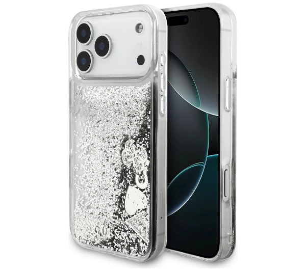 Etui Guess Liq. Glitter Charms do iPhone 17 Pro srebrny