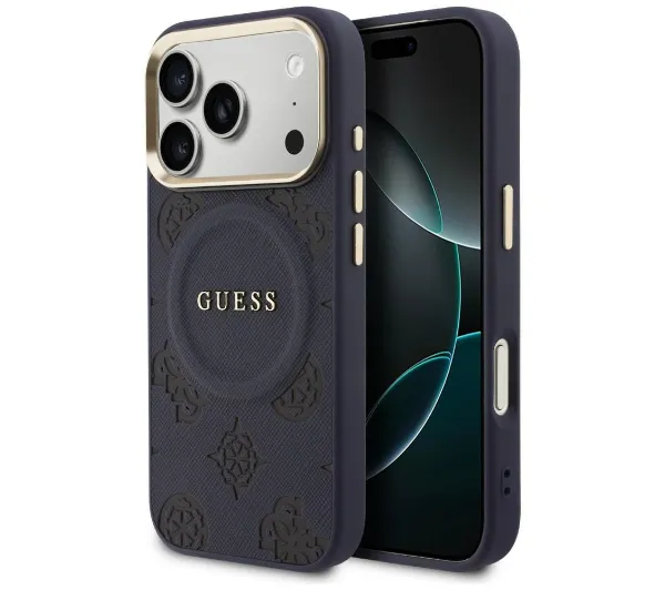 Etui Guess Peony Hot Stamp MagSafe do iPhone 17 Pro Niebieski