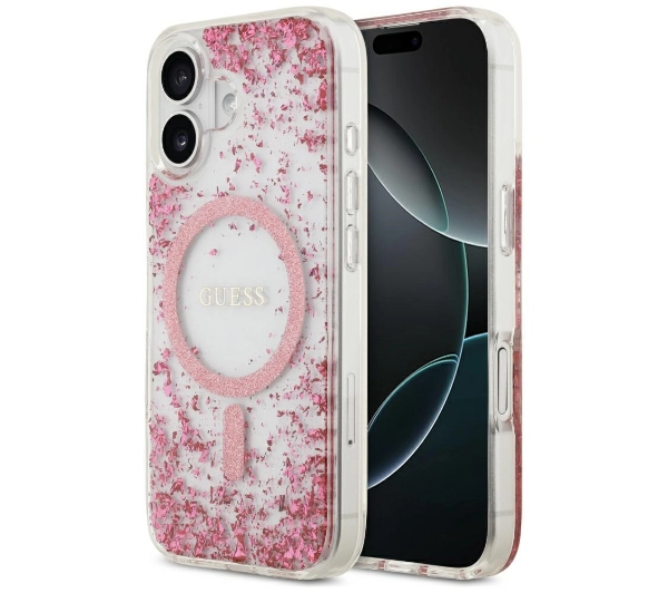 Etui Guess Resin Bottom Glitter MagSafe do iPhone 17 różowy