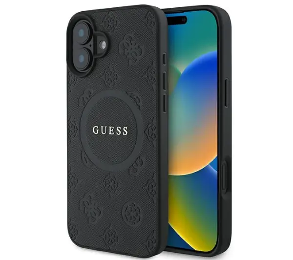 Etui Guess Saffiano Peony Classic Logo MagSafe do iPhone 16 Czarny