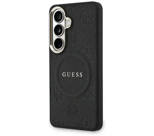 Etui Guess Saffiano Peony Embossed Ring MagSafe do Galaxy S26+ Czarny