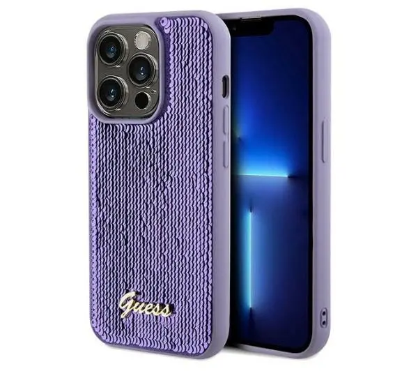 Etui Guess Sequin Script Metal GUHCP13XPSFDGSU do iPhone 13 Pro Max Fioletowy