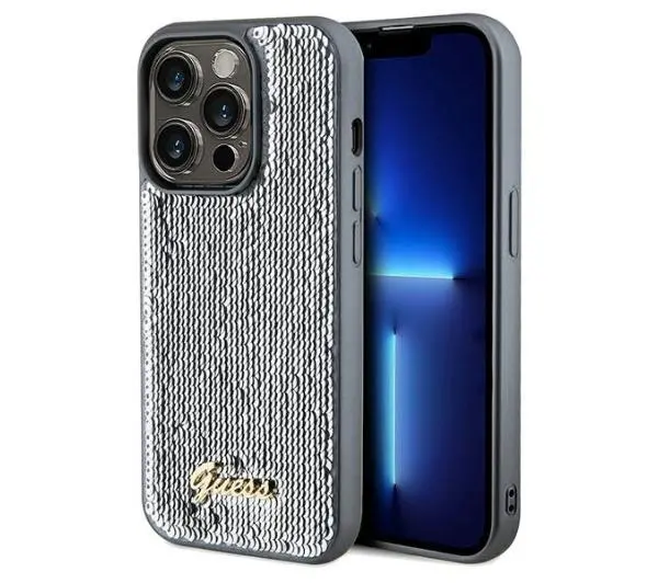Etui Guess Sequin Script Metal GUHCP14LPSFDGSS do iPhone 14 Pro Srebrny