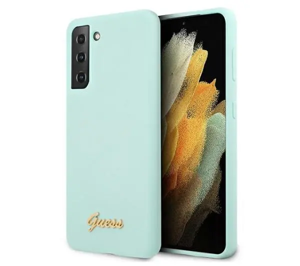 Etui Guess Silicone Script Gold Logo do Samsung Galaxy S21+ Niebieski