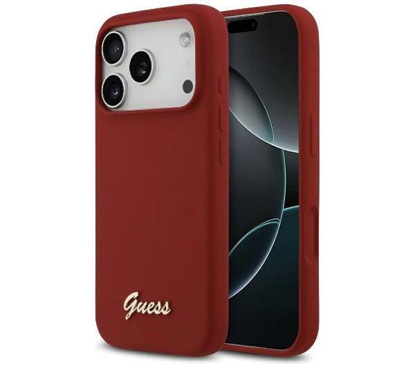 Etui Guess Silicone Script Metal Logo MagSafe do iPhone 17 Pro magenta