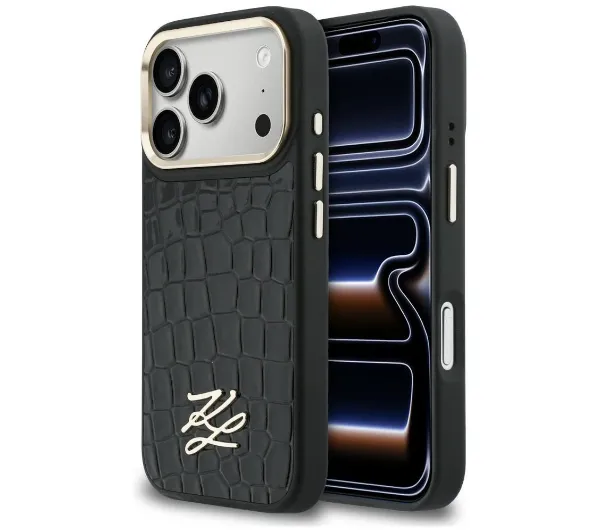 Etui Karl Lagerfeld Croco KL Script Logo MagSafe do iPhone 17 Pro Czarny