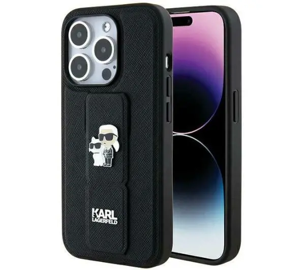 Etui Karl Lagerfeld Gripstand Saffiano Karl&Choupette Pins KLHCP14XGSAKCPK do iPhone 14 Pro Max Czarny