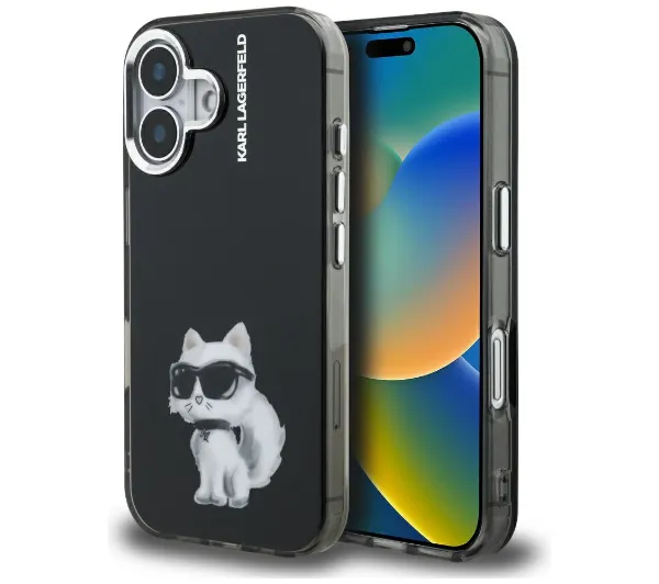 Etui Karl Lagerfeld IML Aquarelle Choupette & Logo do iPhone 16 Czarny