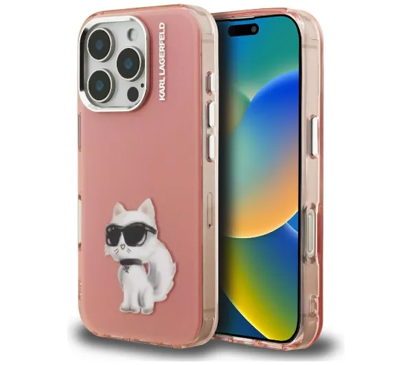 Etui Karl Lagerfeld IML Aquarelle Choupette & Logo do iPhone 16 Pro Różowy