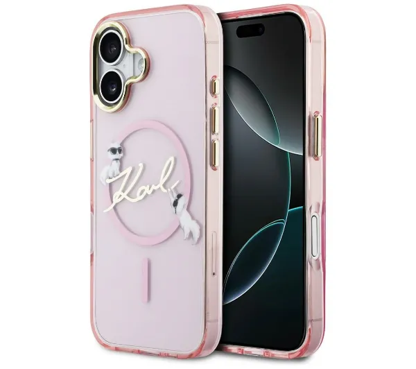 Etui Karl Lagerfeld IML Choupettes Karl Script Logo MagSafe do iPhone 17 Różowy
