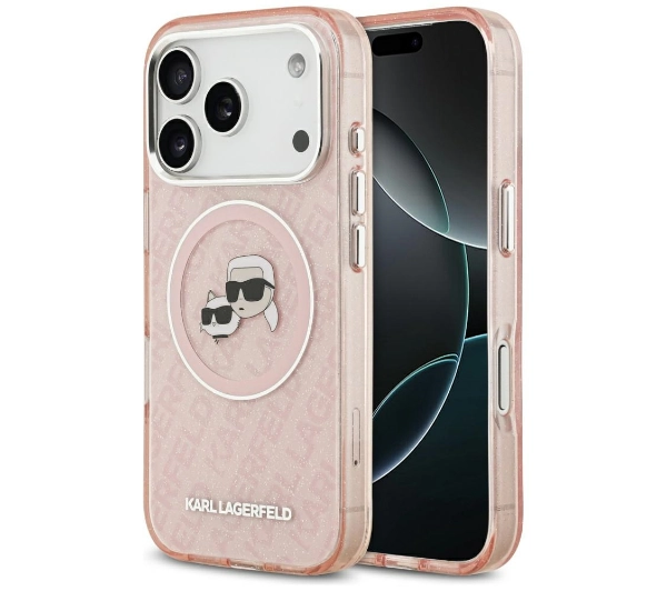 Etui Karl Lagerfeld IML Glitter Karl & Choupette Heads Logo MagSafe do iPhone 17 Pro Max Różowy