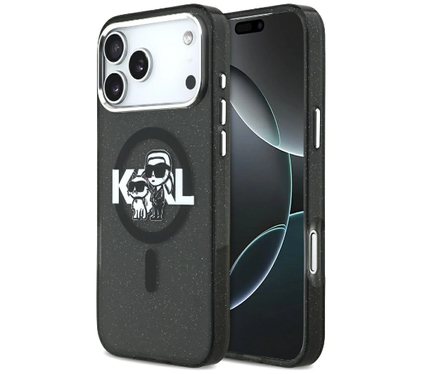 Etui Karl Lagerfeld IML Glitter Karl & Choupette Sketch Logo MagSafe do iPhone 17 Pro Max Czarny
