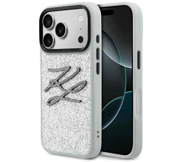 Etui Karl Lagerfeld IML Glitter KL Diamond Logo do iPhone 17 Pro Srebrny